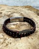 Ανδρικό δερμάτινο βραχιόλι με Μάτι Ταύρου και ατσάλινο φτερό.