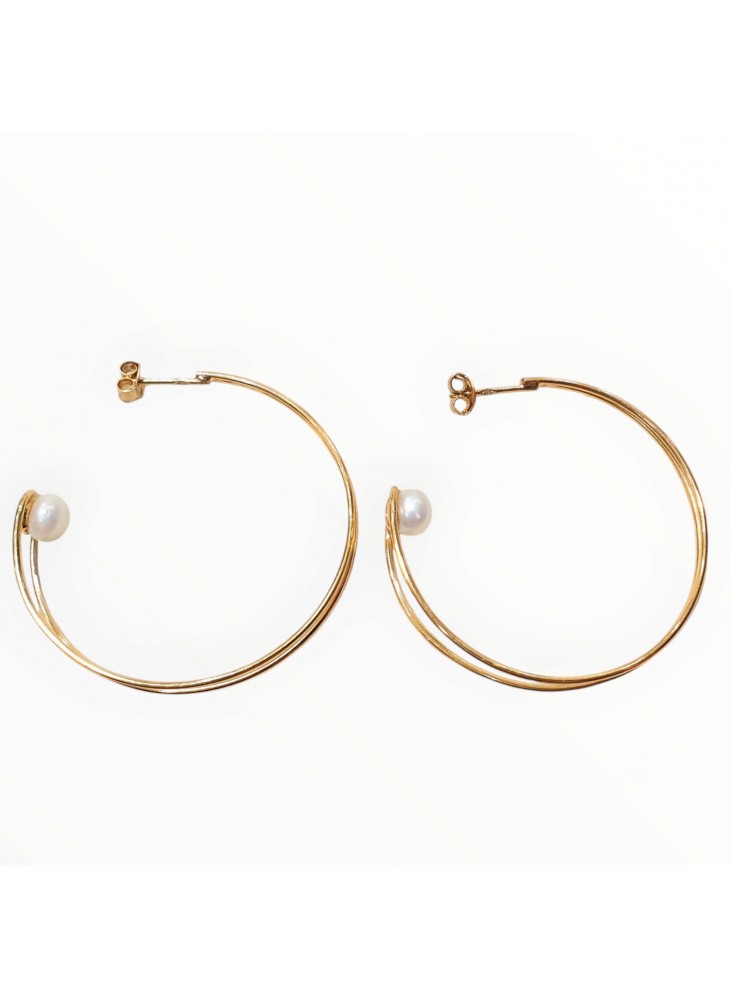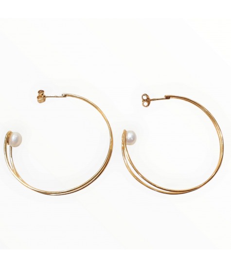 Χειροποίητα Σκουλαρίκια Κρίκοι από επιχρυσωμένο Ασήμι 925 με Μαργαριτάρια – Minimal Κομψότητα