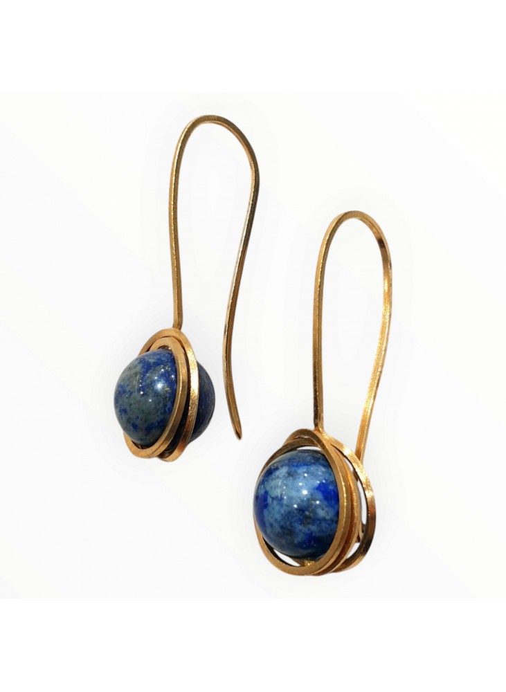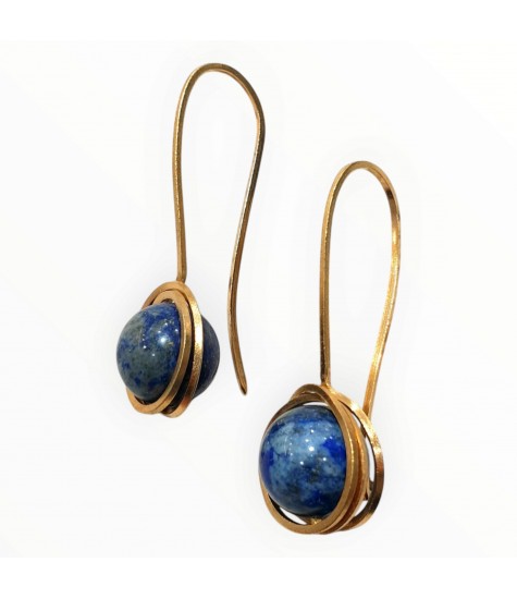 Χειροποίητα Επιχρυσωμένα Σκουλαρίκια από Ασήμι 925 με Λάπις Λαζούλι