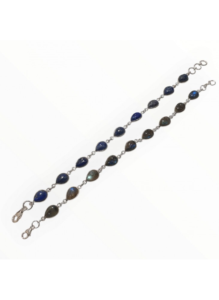 Γυναικείο ασημένιο βραχιόλι με ημιπολύτιμους λίθους Λαβραδορίτη ή Λάπις Λάζουλι.