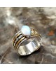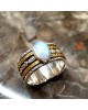Ασημένιο 925 δαχτυλίδι με κινούμενους δακτύλιους στη μέση και λίθο Φεγγαρόπετρας.