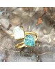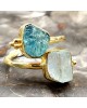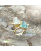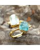 Ασημένιο 925 και επιχρυσωμένο με 18k ανοιγόμενο δαχτυλίδι με ακατέργαστους αυθεντικούς λίθους Ακουαμαρίνας και Απάτητη.